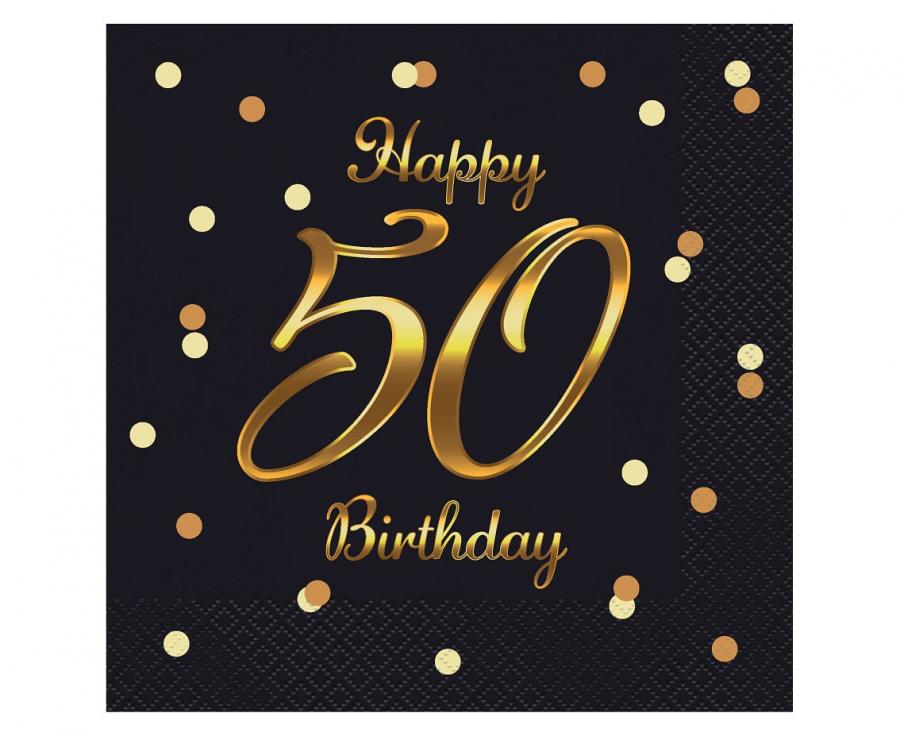 Serwetki Happy 50 Birthday czarne nadruk złoty 33 cm x 33 cm 20 szt