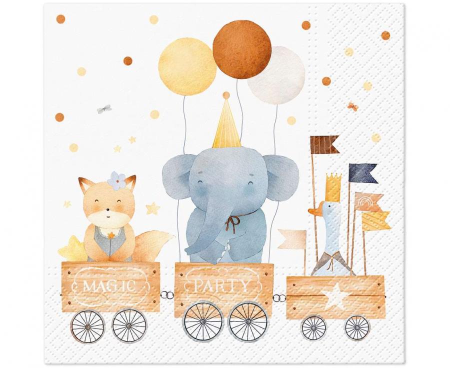 Serwetki PAW Zwierzątka w pociągu 33 cm x 33 cm 20 szt