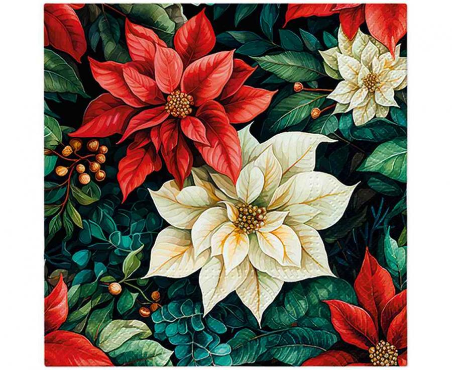 Serwetki PAW wzorzyste Poisnettia On Black 33 xm x 33 cm 20 szt