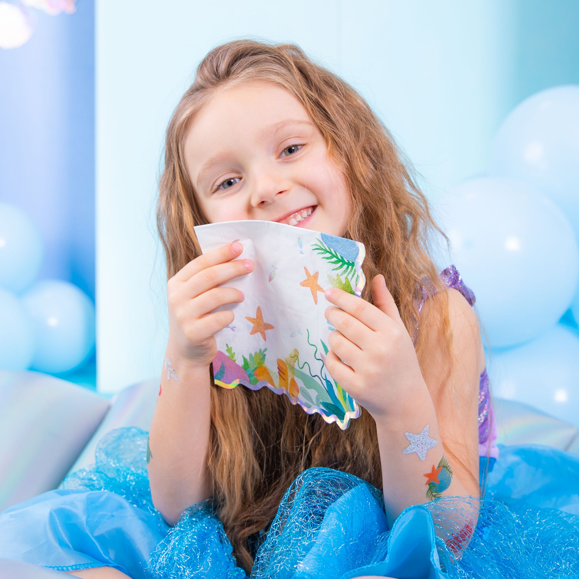 - Jedna ćwiartka serwetki posiada opalizującą srebrną obwódkę i rybki