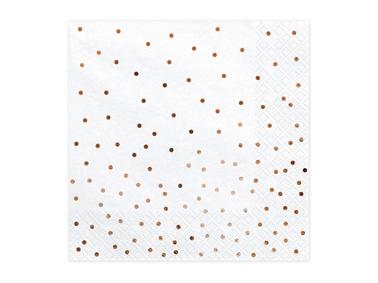 Serwetki papierowe białe w różowo złote kropki 20 szt