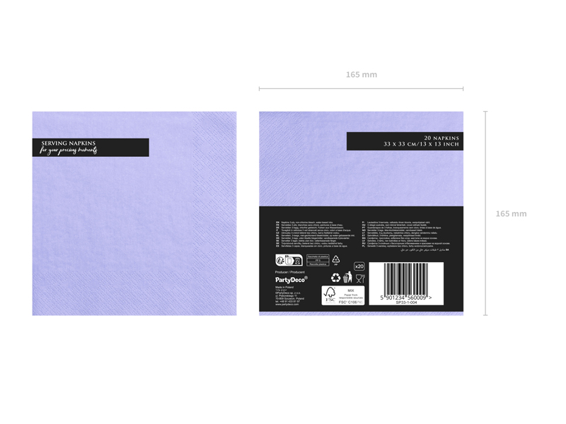 Serwetki trójwarstwowe liliowy 33x33 cm