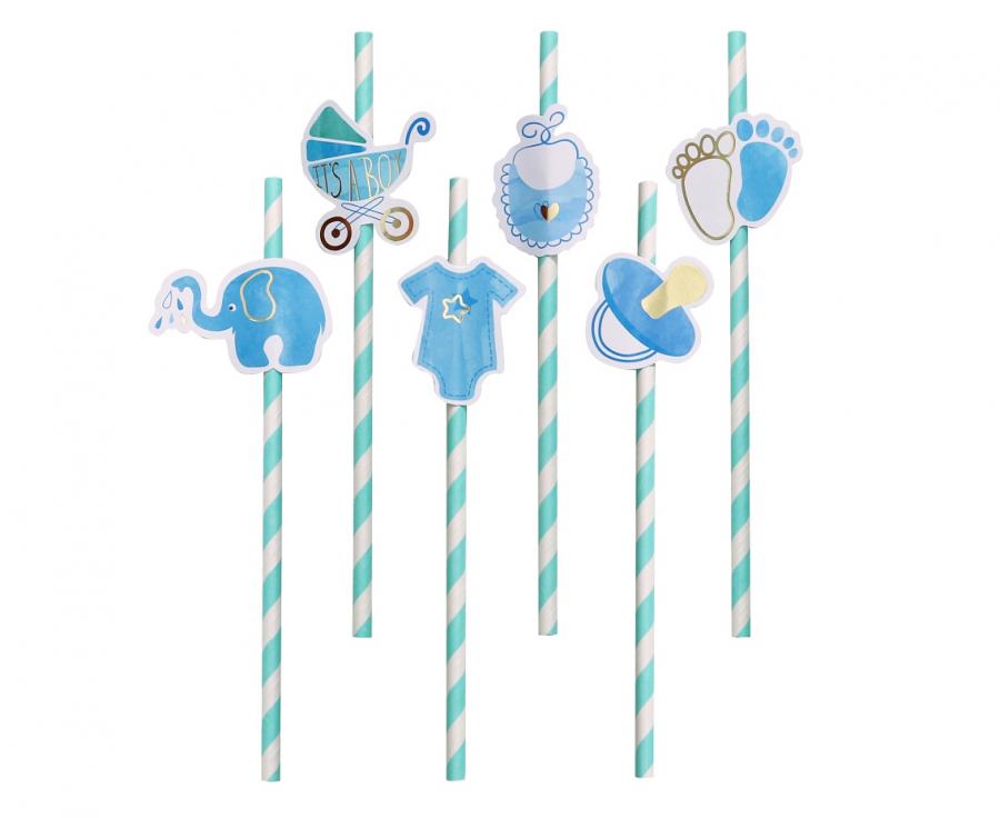 Słomki papierowe Baby Boy jasnoniebieskie 20 cm 8 szt