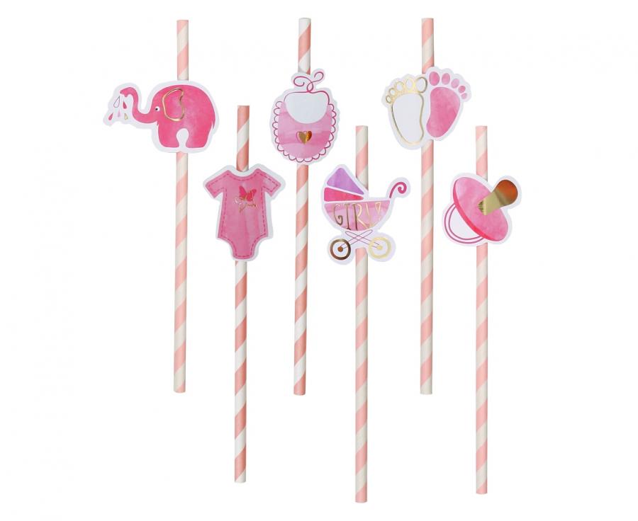Słomki papierowe Baby Girl jasnoróżowe 20 cm 8 szt
