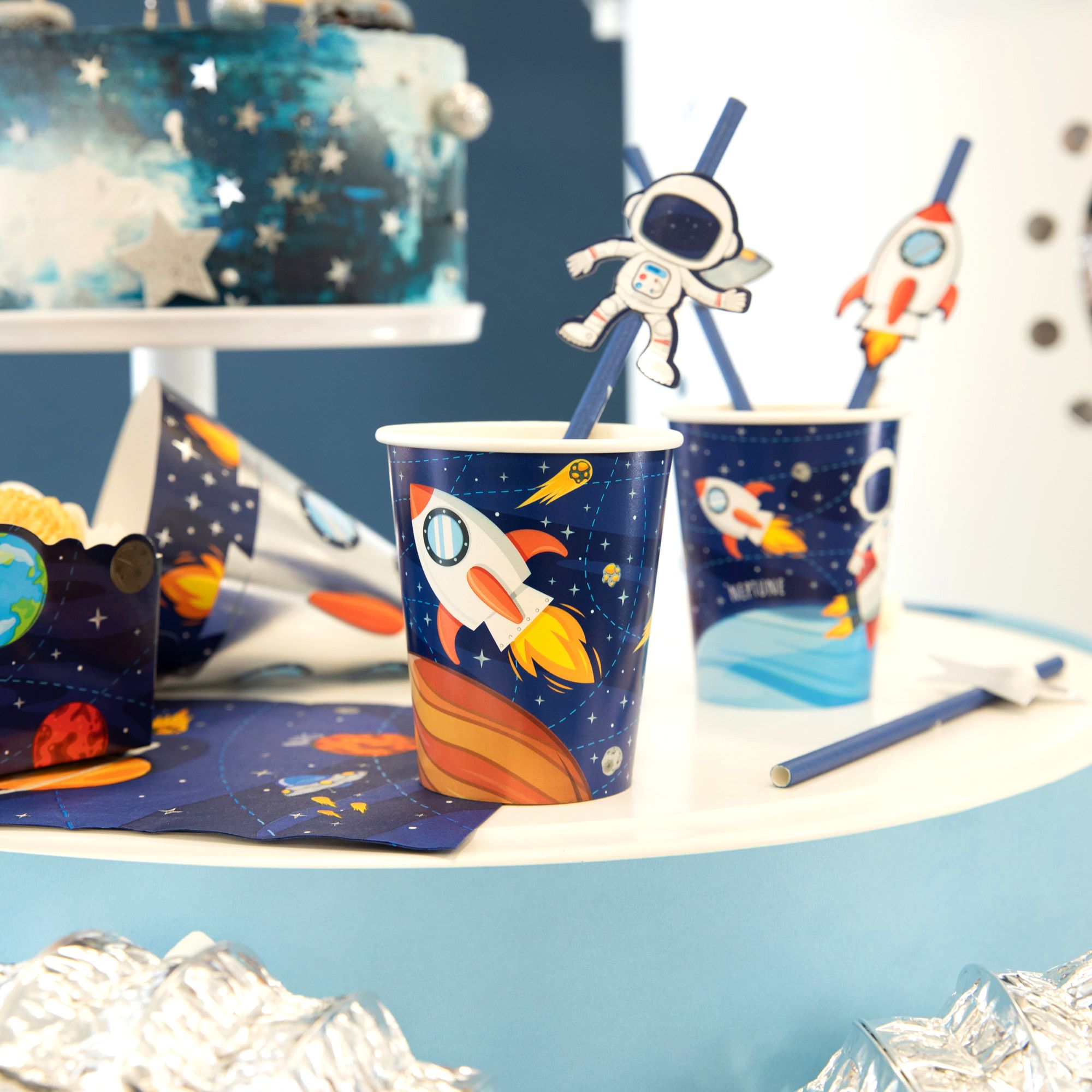 - W zestawie: po 2 słomki z gwiazdkami, pojazdem kosmicznym, rakietą i kosmonautą.
