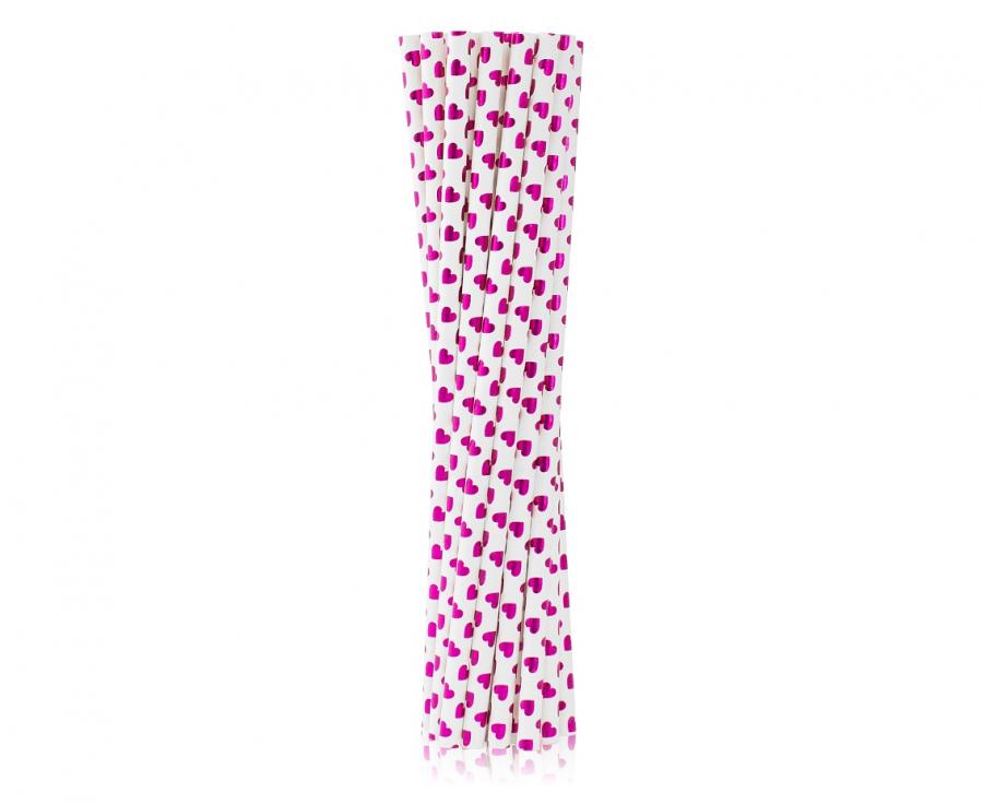 Słomki papierowe fioletowe serca 19 cm 12 szt