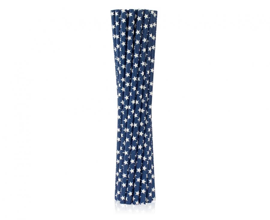 Słomki papierowe granatowe w białe gwiazdki 19 cm 12 szt
