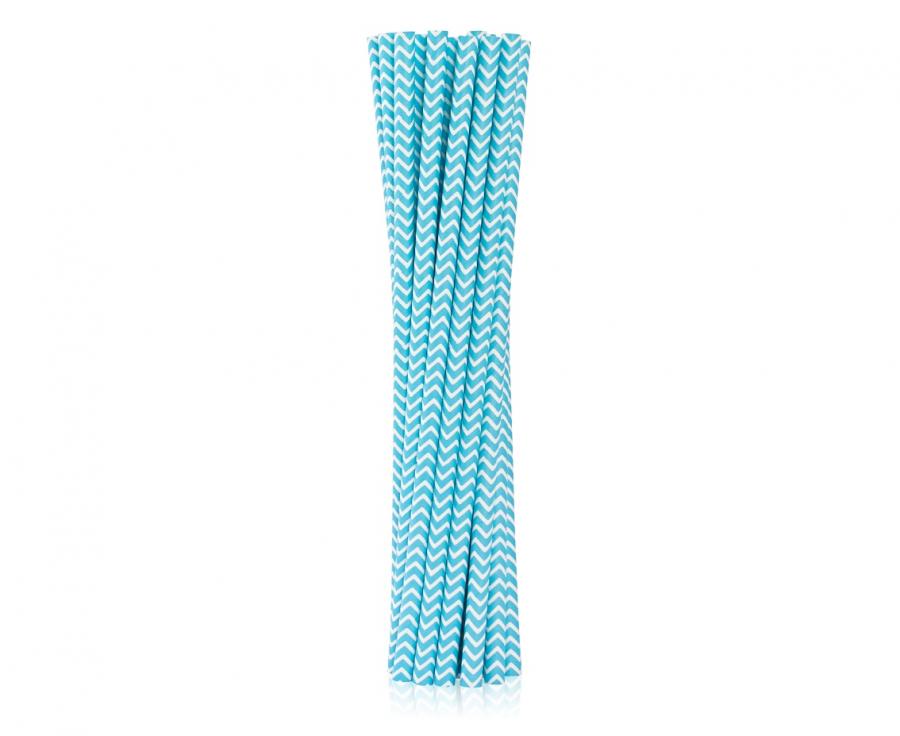 Słomki papierowe jasnoniebieskie szlaczki 19 cm 40 szt