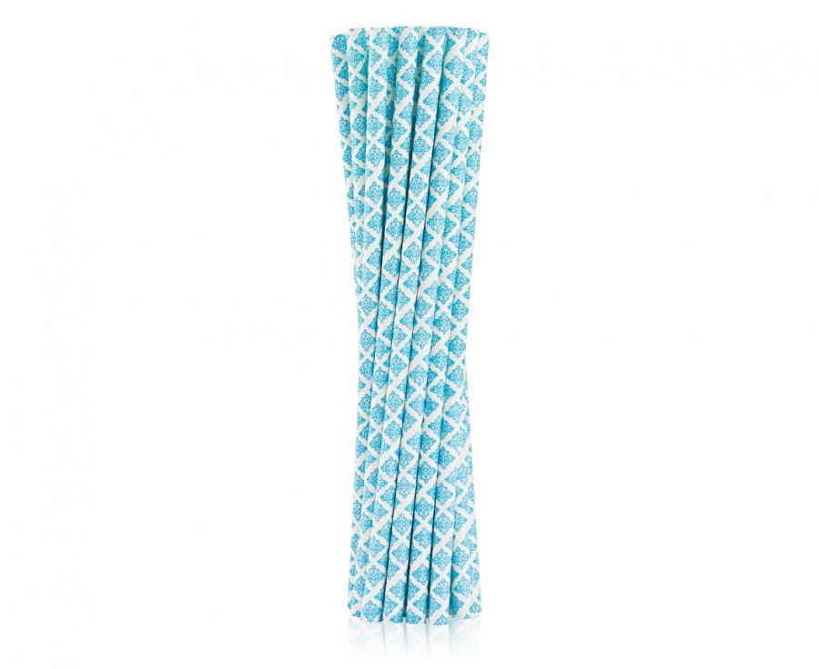 Słomki papierowe niebieska koronka 19 cm 12 szt