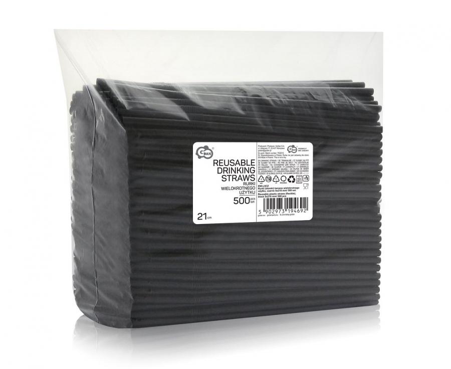 Słomki plastikowe łamane do napojów drinków czarne 500 szt