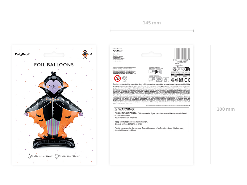 Stojący balon foliowy Dracula 64x81 cm