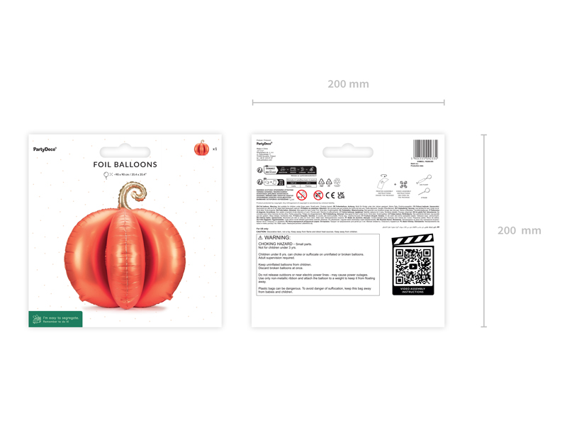 Stojący balon foliowy Dynia 3D 90x90 cm pomarańczowy