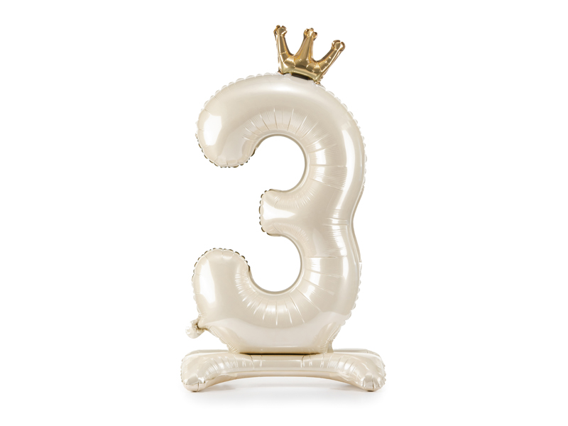 Stojący balon foliowy cyfra 3 jasny kremowy 84 cm