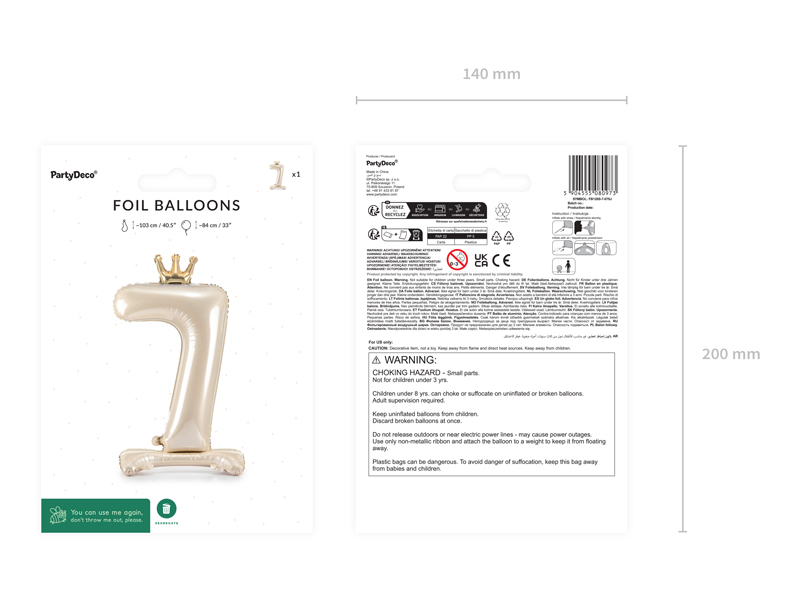 Stojący balon foliowy cyfra 7 jasny kremowy 84 cm