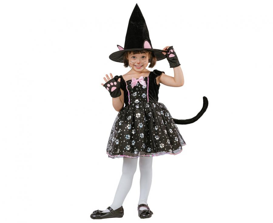 Strój Kotek Czarownica (kapelusz sukienka z ogonem rękawiczki) rozm. 92/104 cm
