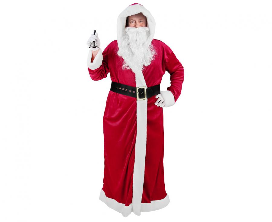 Strój Mikołaja Płaszcz welurowy (płaszcz z kapturem pasek broda rękawiczki dzwonek) rozm. un.