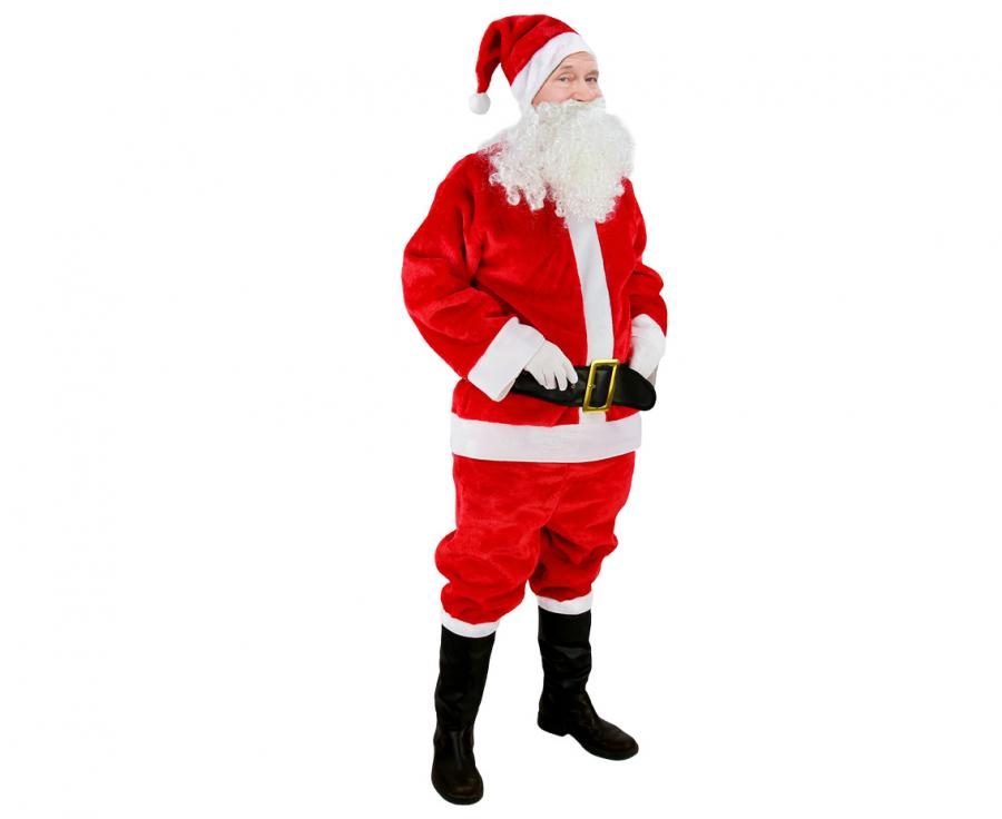 Strój Mikołaja (czapka bluza spodnie broda pasek nakładki na buty rękawiczki) rozm. un.