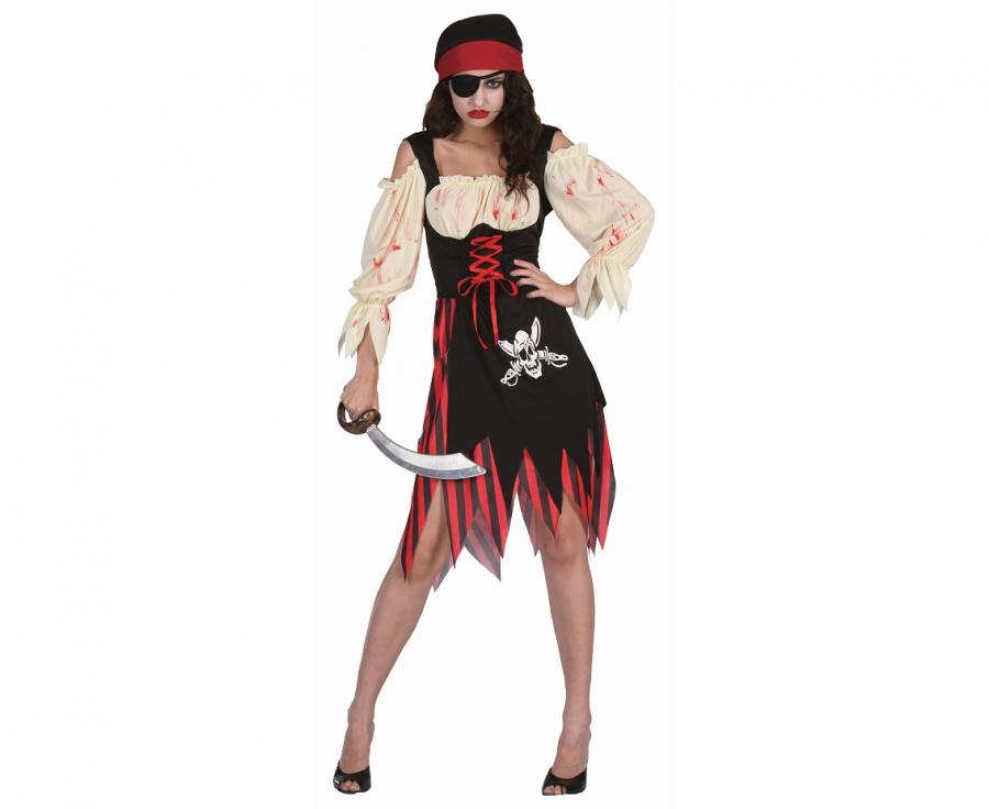 Strój dla dorosłych Grzeszna Piratka (sukienka chustka na głowę opaska na oko) rozm. uniw.