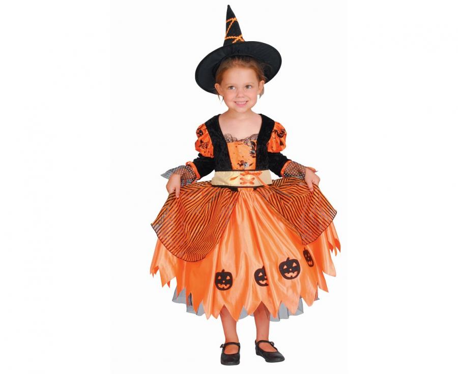Strój dla dzieci Dyniowa Czarownica (sukienka z paskiem kapelusz) rozm. 92/104 cm