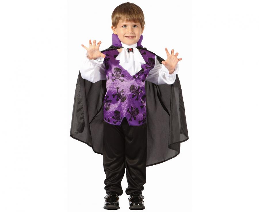 Strój dla dzieci Fioletowy Wampir (bluzka z kamizelką peleryna żabot) rozm. 92/104 cm