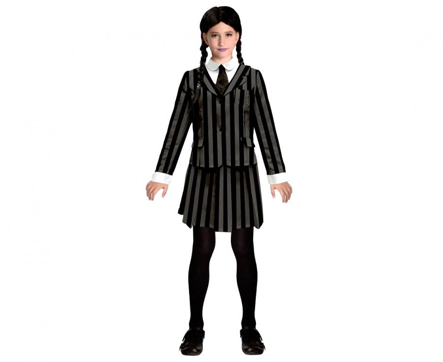 Strój dla dzieci Gotycka Uczennica (żakiet spódnica w paski krawat) rozm. 120/130 cm