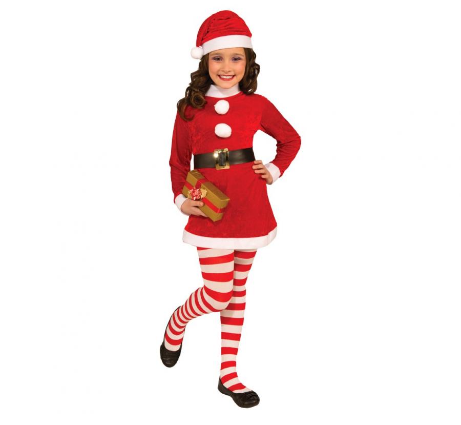 Strój dla dzieci Zadziorna Mikołajka (czapka sukienka pasek pończochy) rozm. 7-9 lat