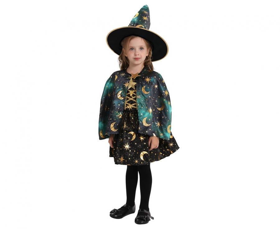 Strój dla dzieci Zielona Czarodziejka ( peleryna kapelusz) rozm. 92/104 cm