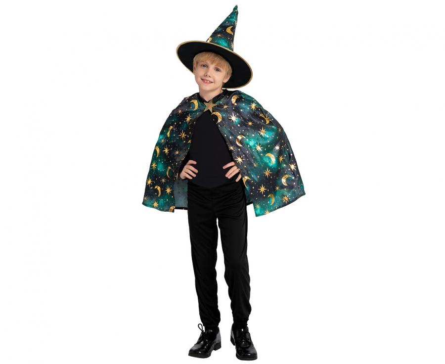 Strój dla dzieci Zielony Czarodziej ( peleryna kapelusz) rozm. 110/120 cm