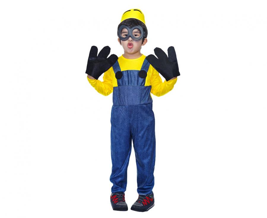 Strój dla dzieci Żółty Ludzik chłopiec (czapka kombinezon rękawiczki okulary) rozm. 110/120 cm - 4 szt i 130/140 cm - 2 szt