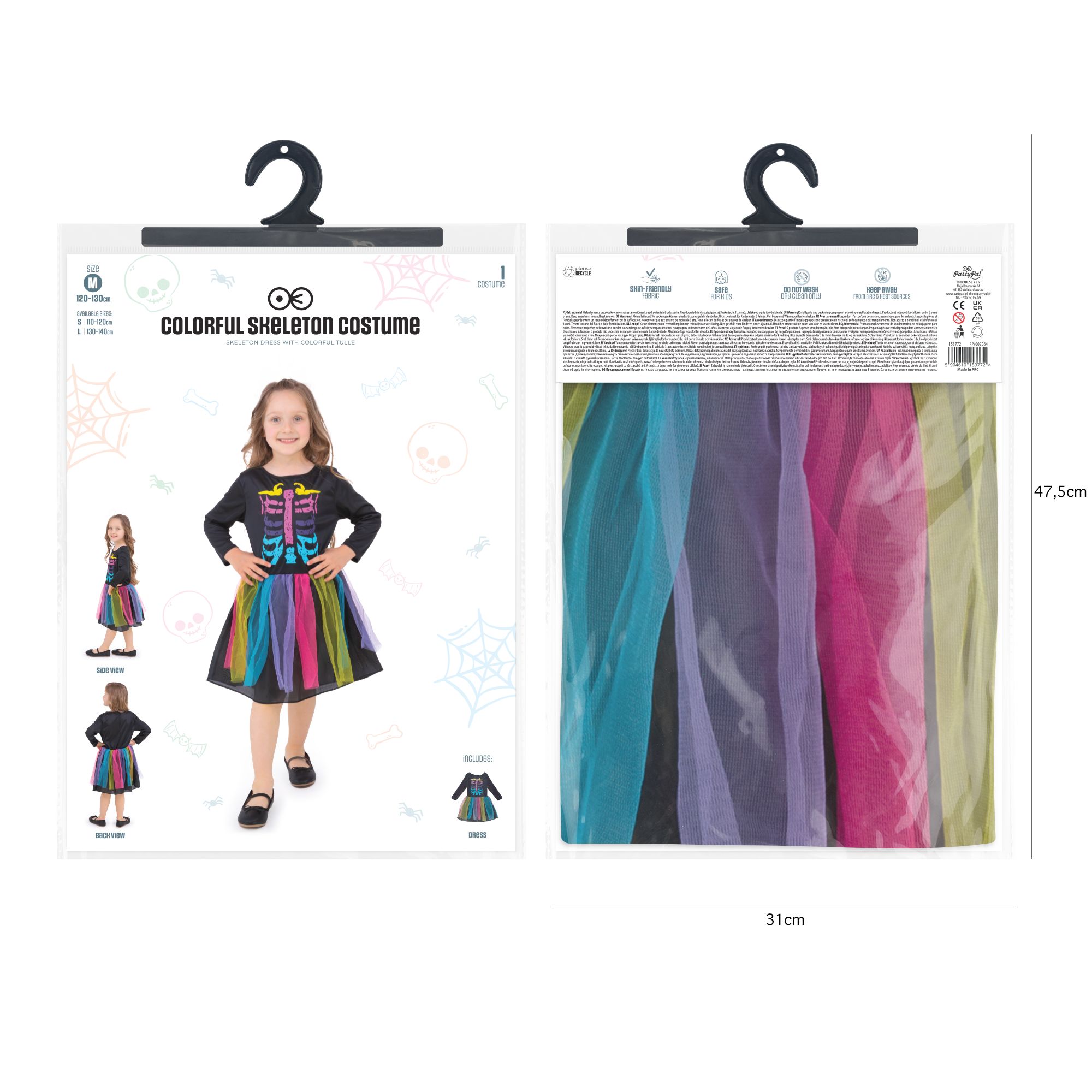 Sukienka dla dziewczynki Halloween Kolorowy Kościotrup rozmiar M