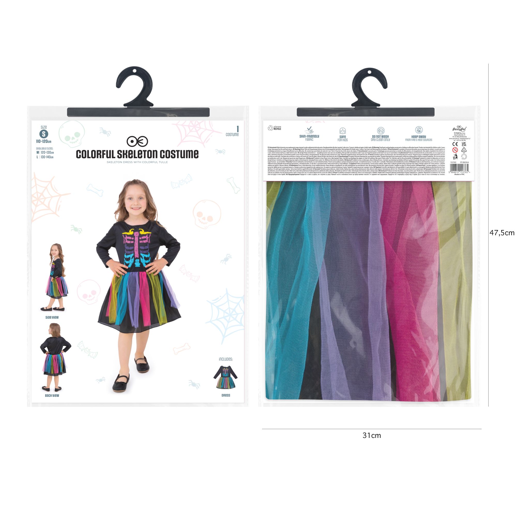 Sukienka dla dziewczynki Halloween Kolorowy Kościotrup rozmiar S