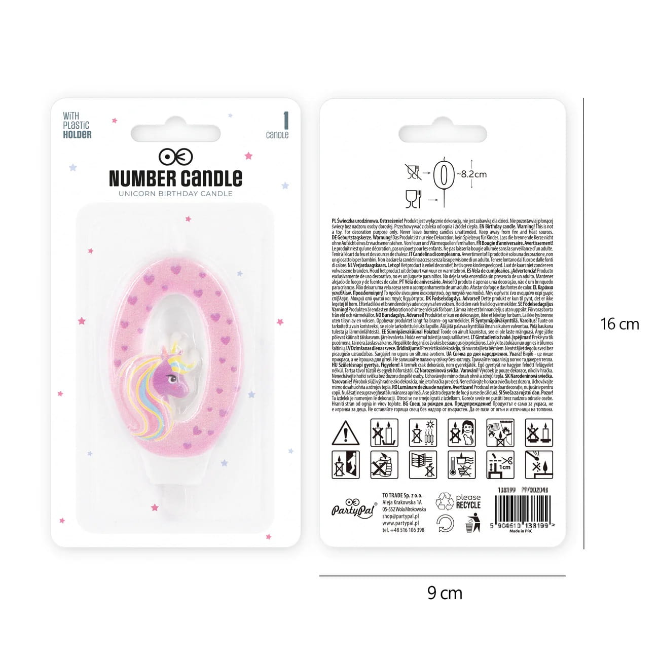 Świeczka cyfra 0 jednorożec