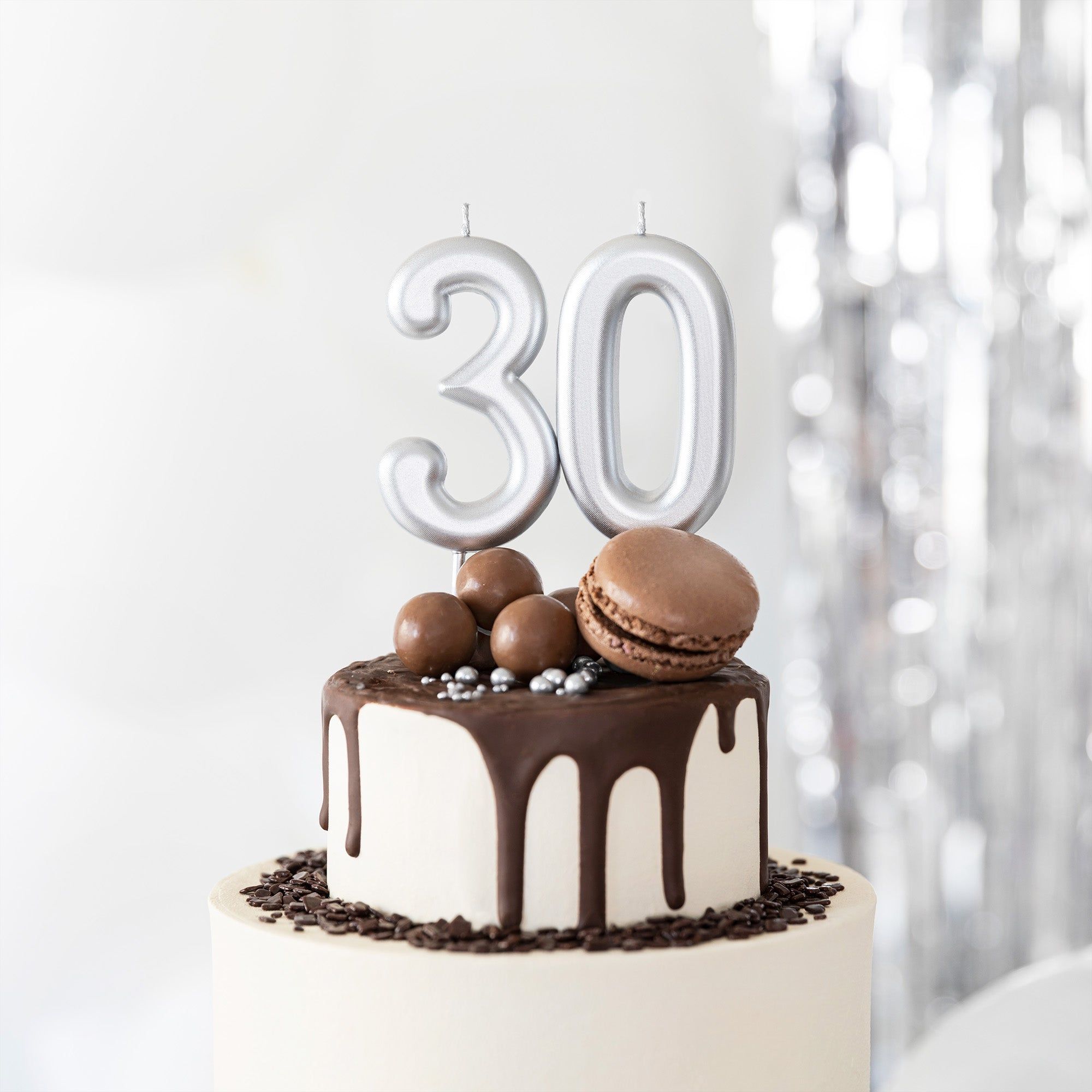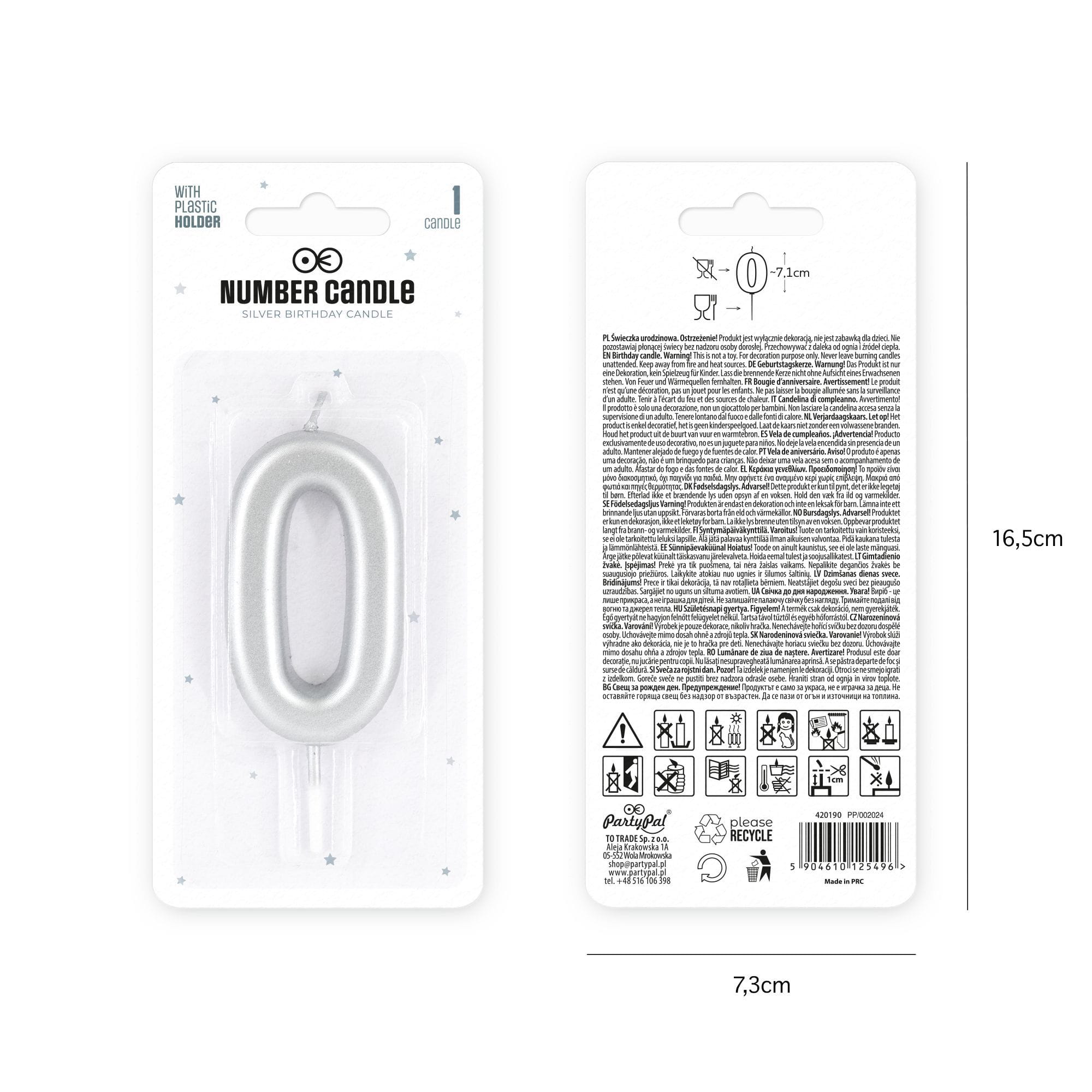 Świeczka cyfra 0 srebrna