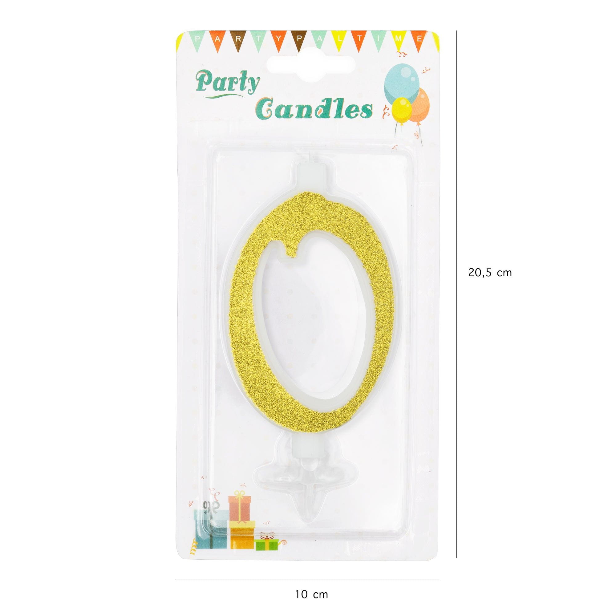 Świeczka cyfra 0 złota z brokatem duża