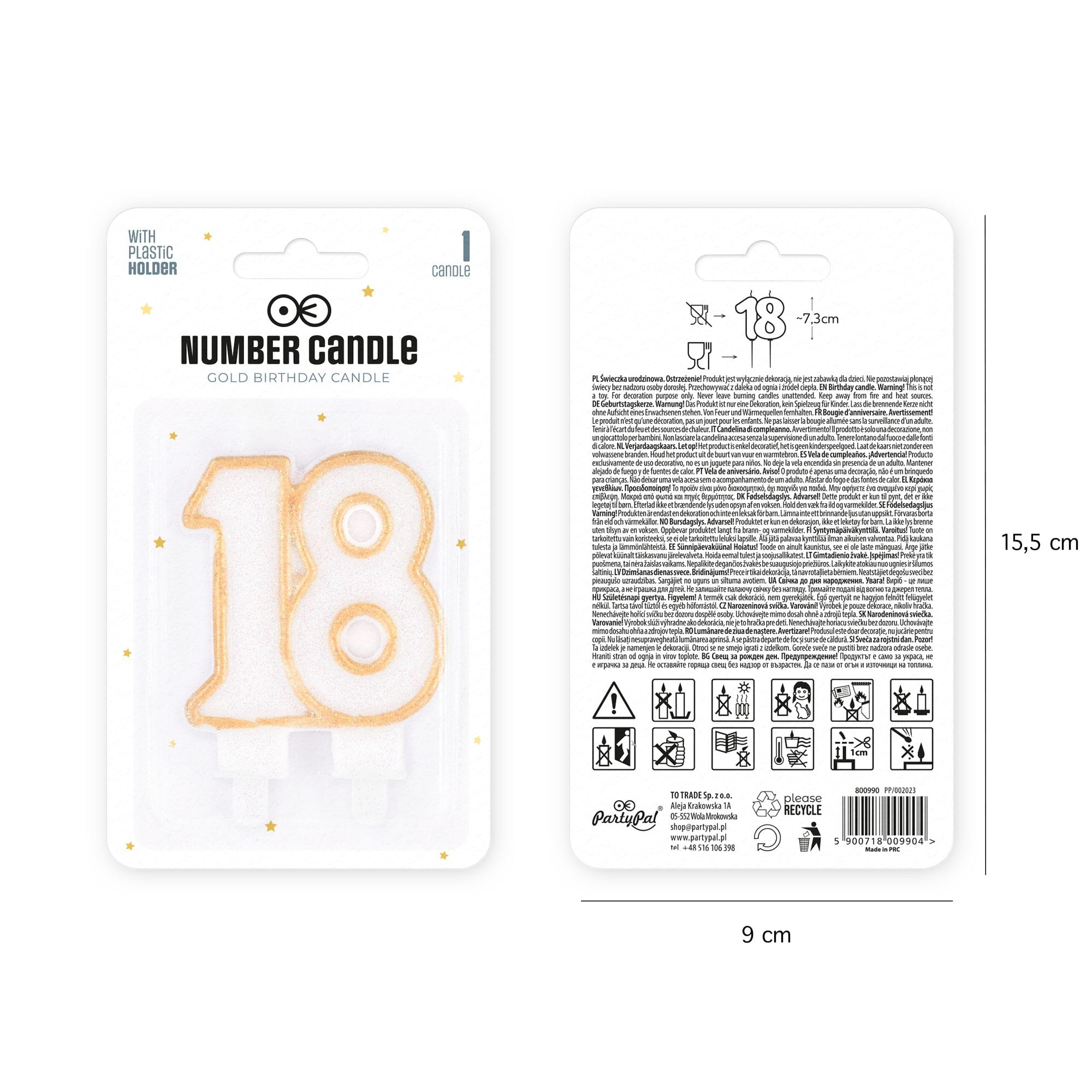 Świeczka cyfra 18 złota