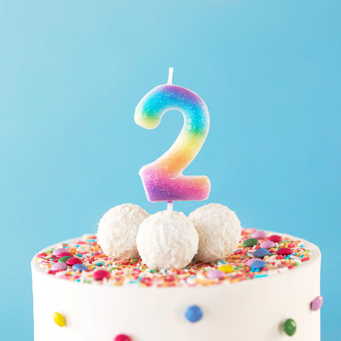 Świeczka cyfra 2 tęczowa