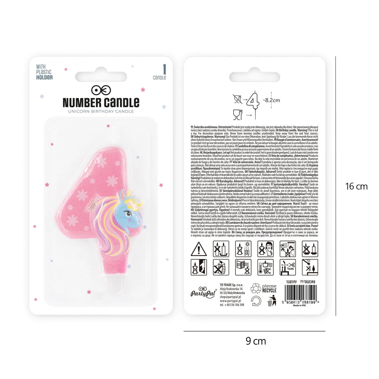 Świeczka cyfra 4 jednorożec