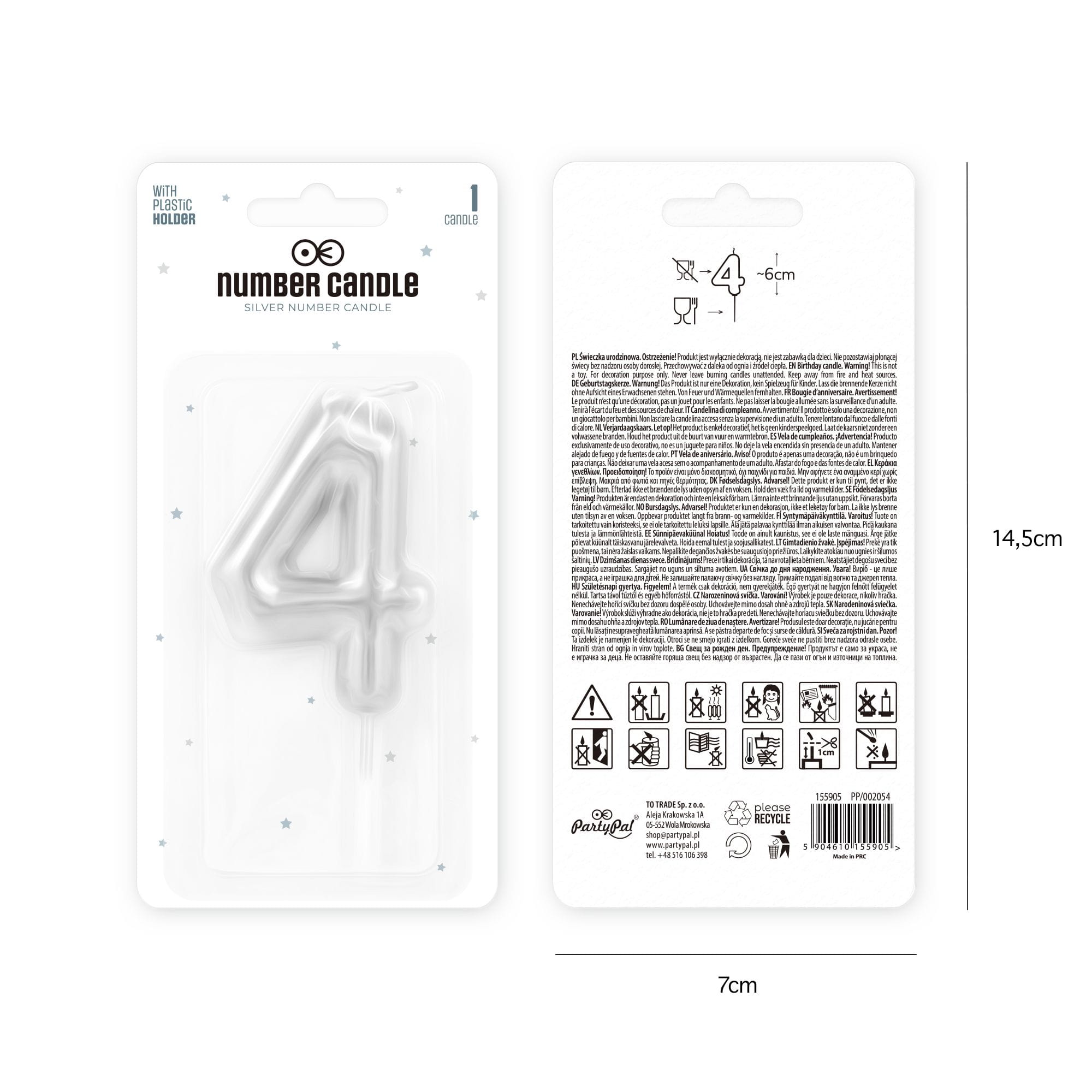 Świeczka cyfra 4 srebrna połysk