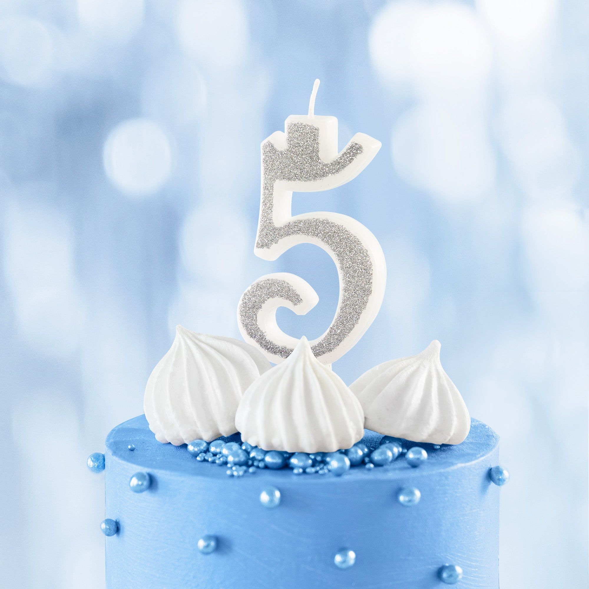 Świeczka cyfra 5 srebrna z brokatem mała