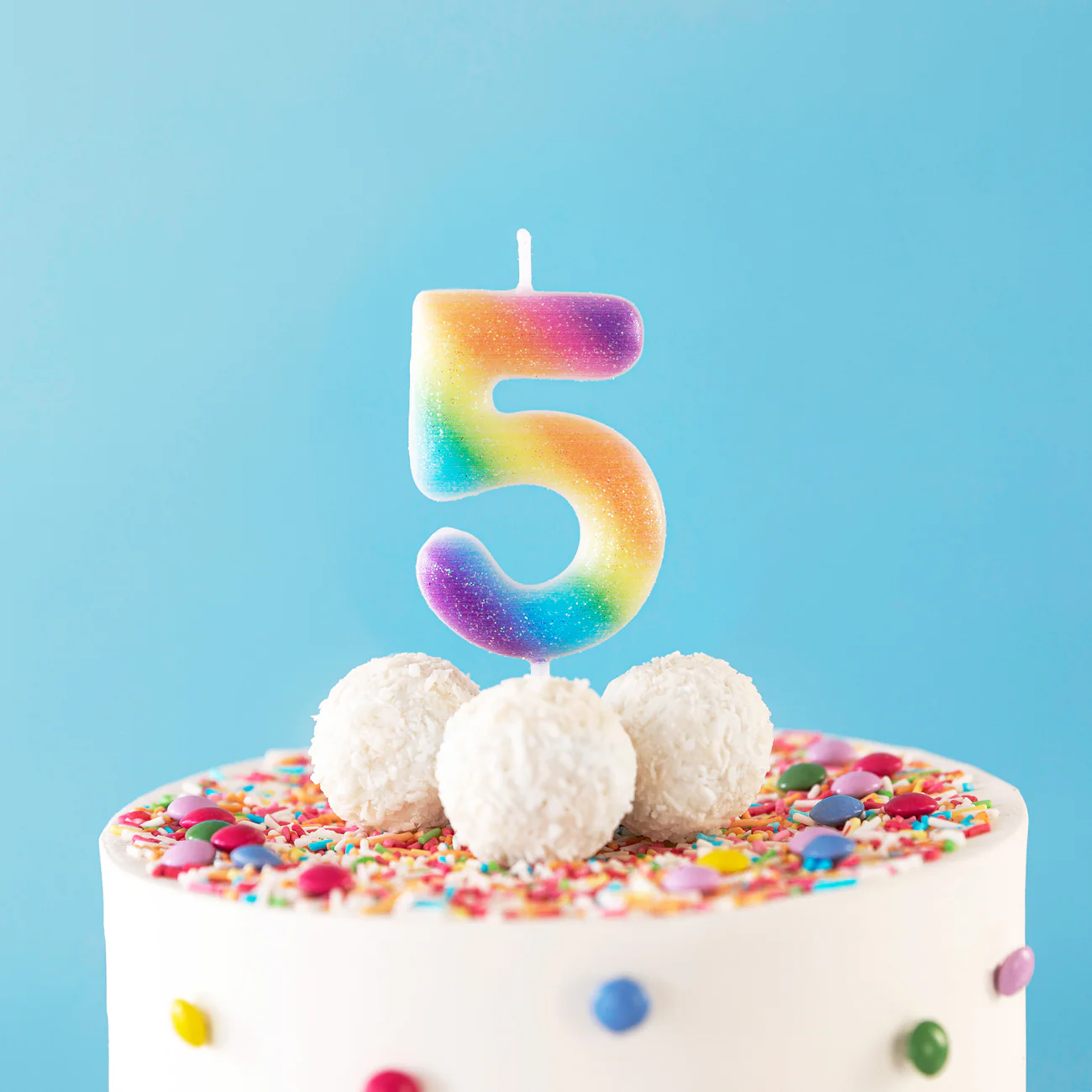 Świeczka cyfra 5 tęczowa