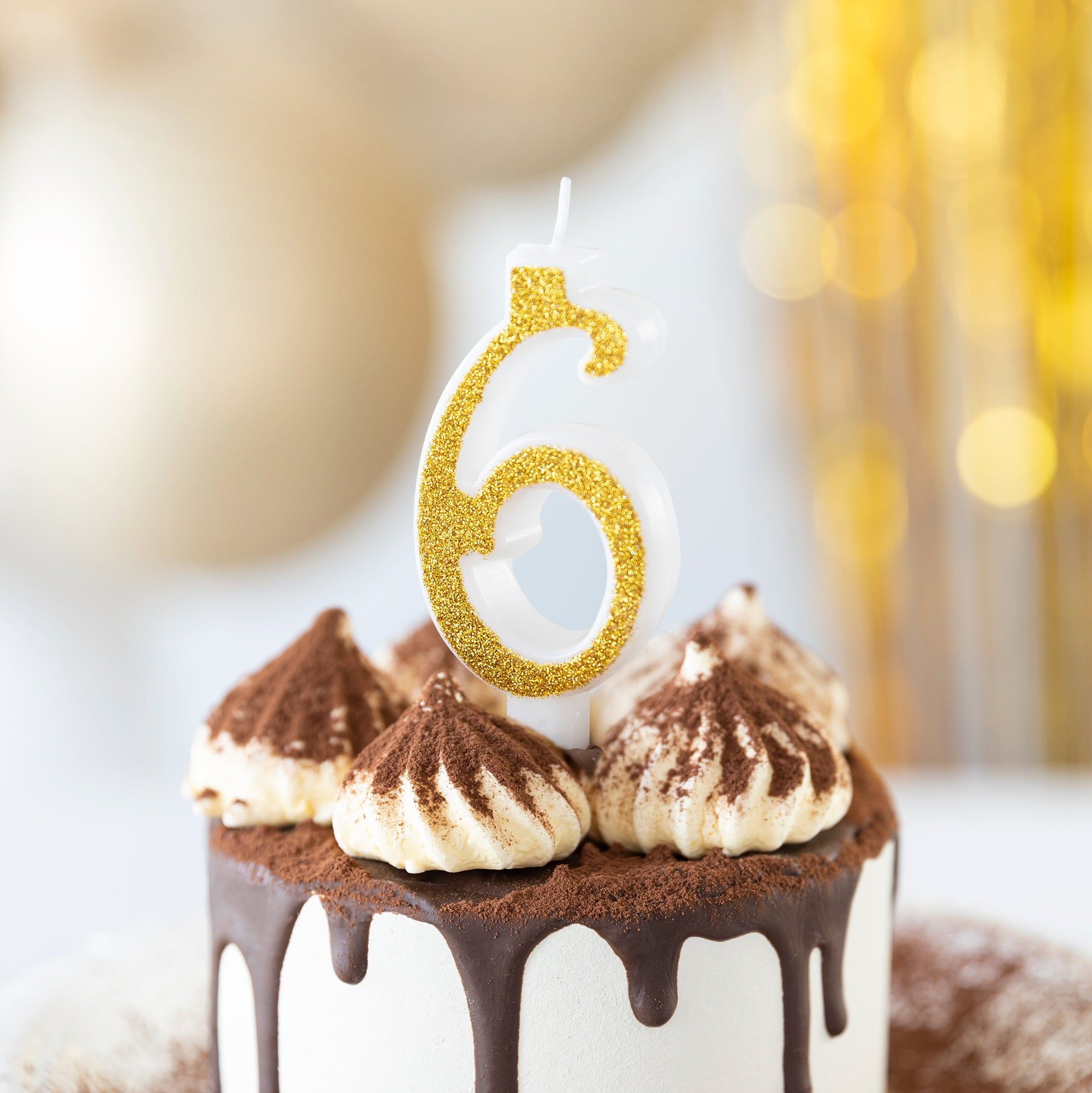 Świeczka cyfra 6 złota z brokatem mała
