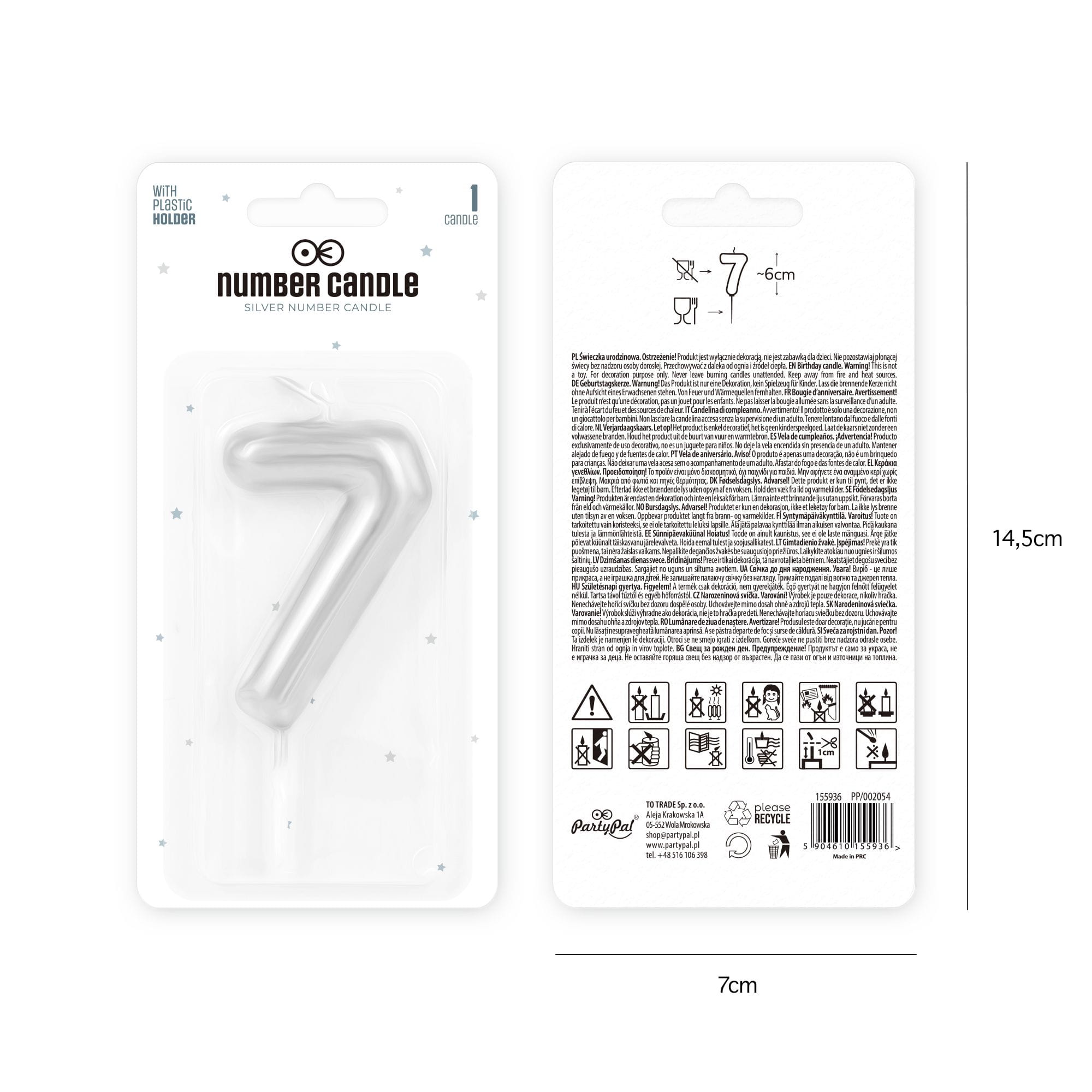 Świeczka cyfra 7 srebrna połysk