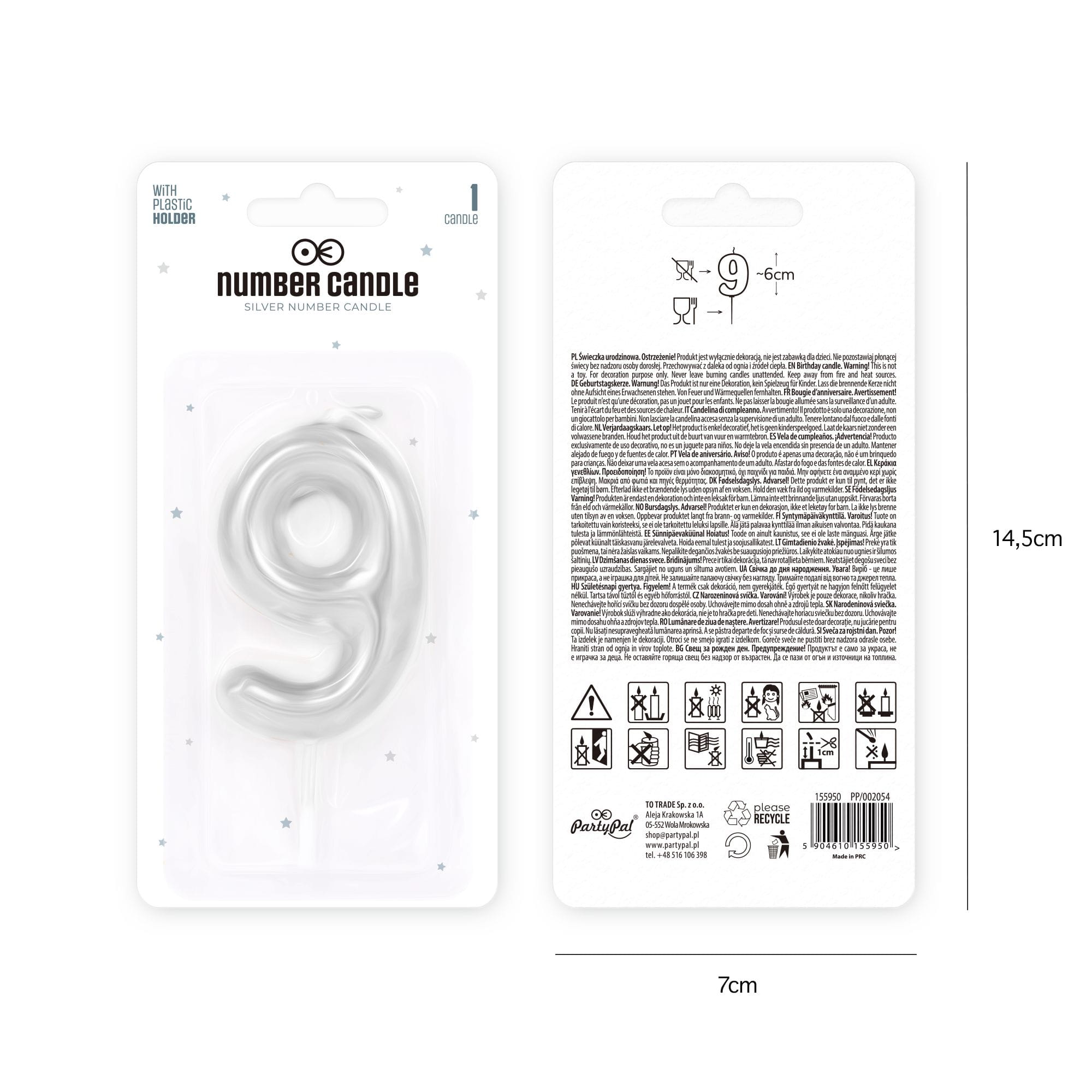 Świeczka cyfra 9 srebrna połysk
