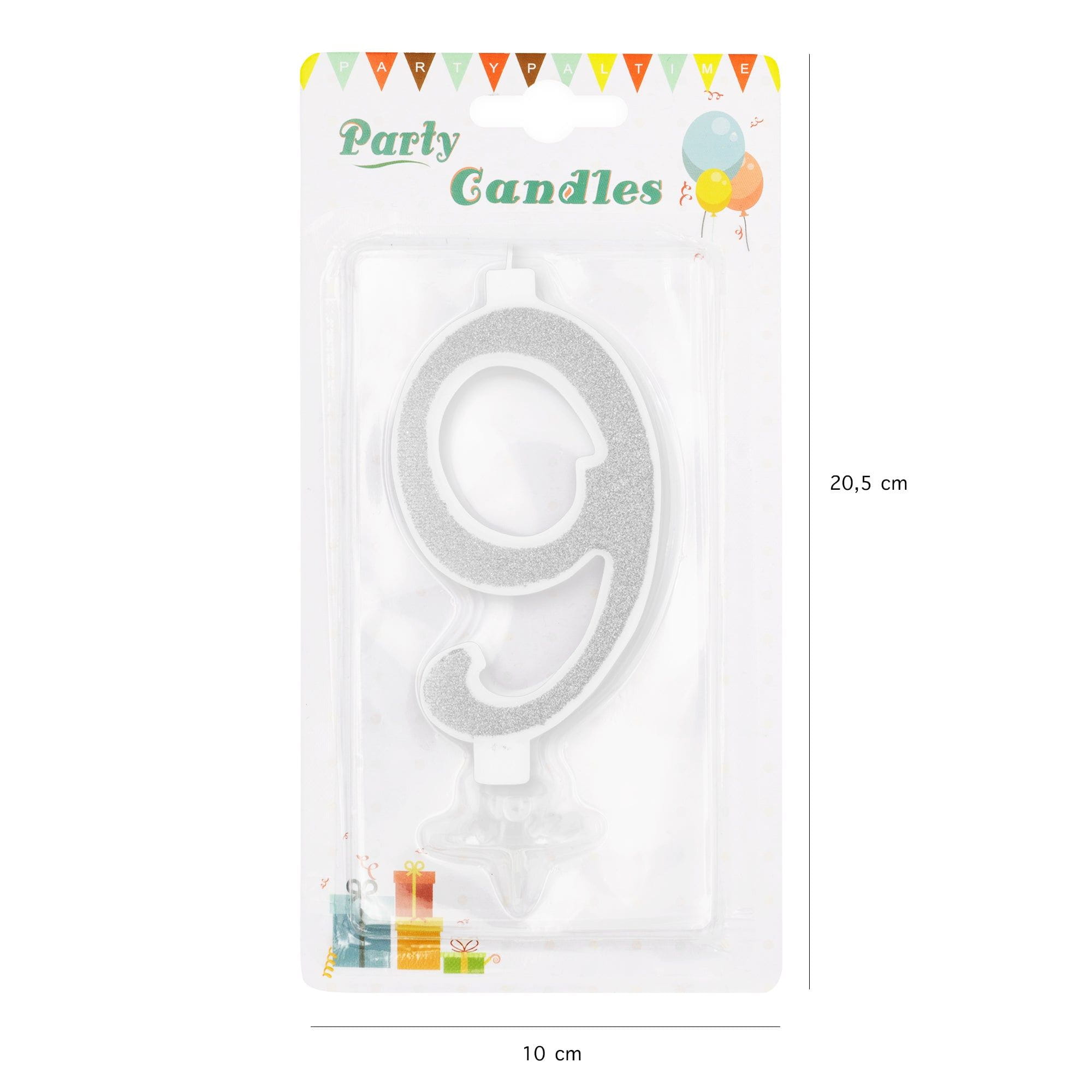 Świeczka cyfra 9 srebrna z brokatem duża