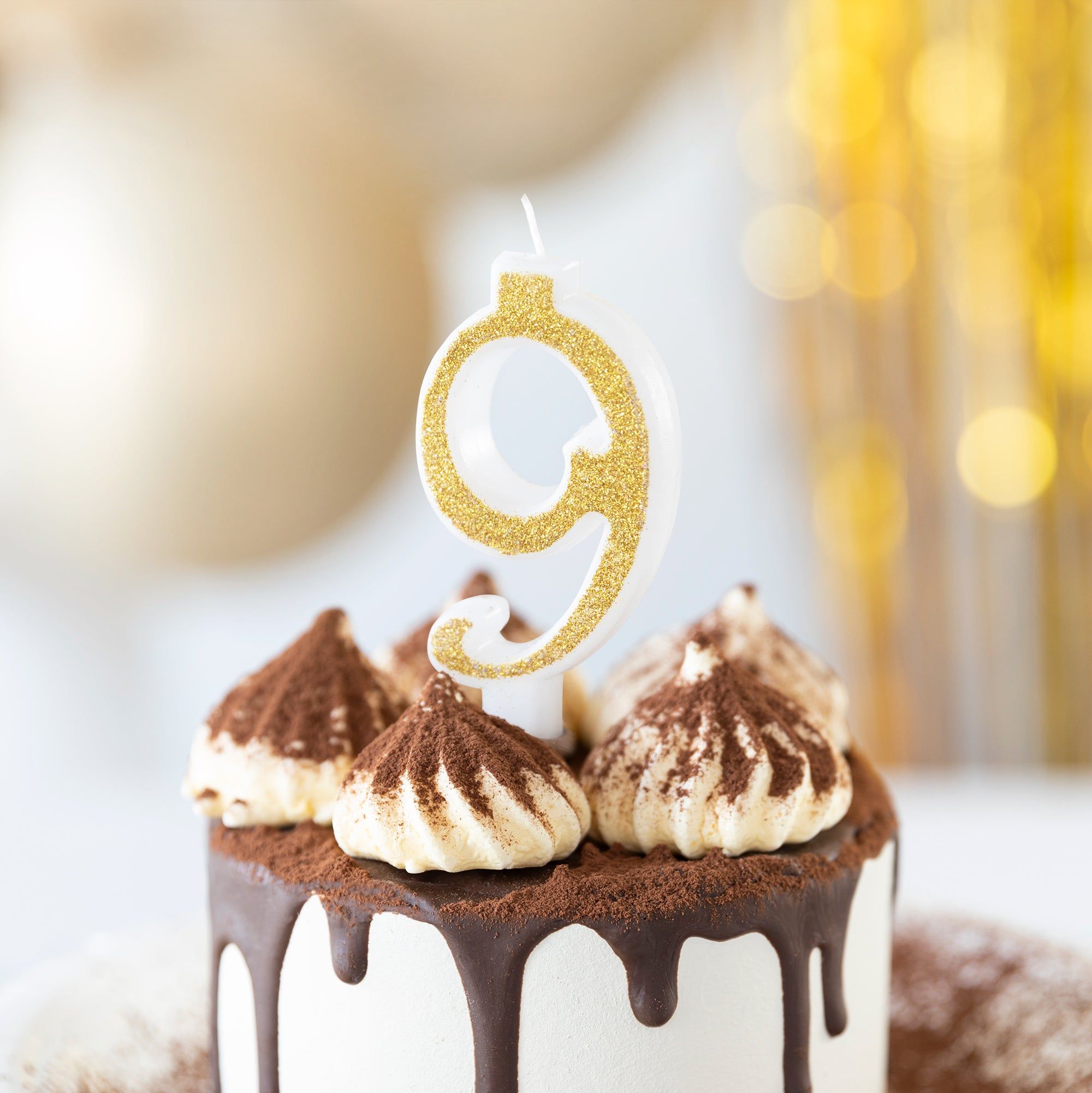 Świeczka cyfra 9 złota z brokatem mała