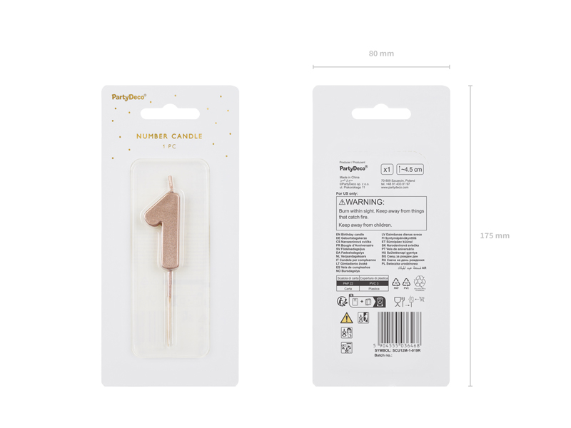 Świeczka urodzinowa Cyferka 1 różowe złoto 4.5 cm