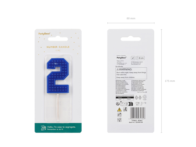Świeczka urodzinowa Cyferka 2 6 cm niebieski