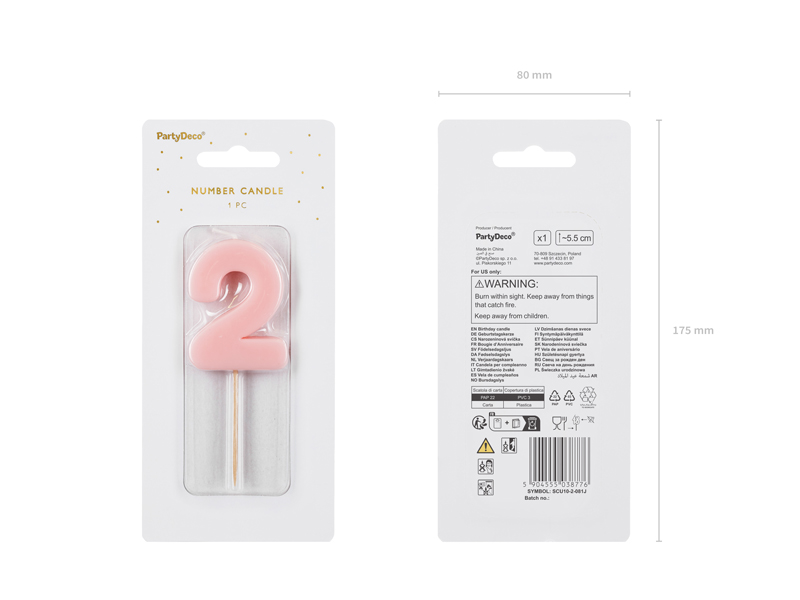 Świeczka urodzinowa Cyferka 2 jasny różowy 5.5 cm