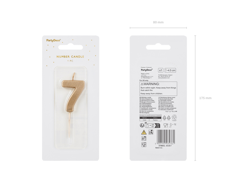 Świeczka urodzinowa Cyferka 7 4.5 cm złoty
