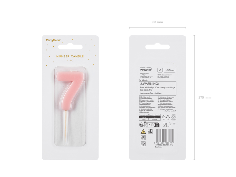 Świeczka urodzinowa Cyferka 7 jasny różowy 5.5 cm